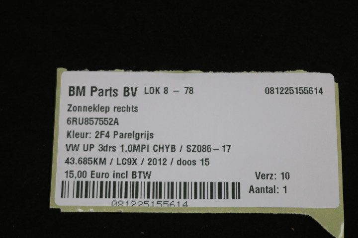 Zonneklep rechts VW Up!