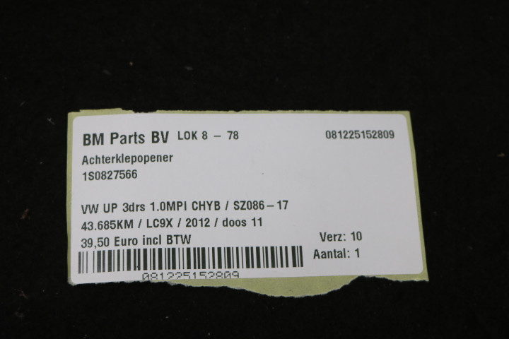 Achterklepopener VW Up!