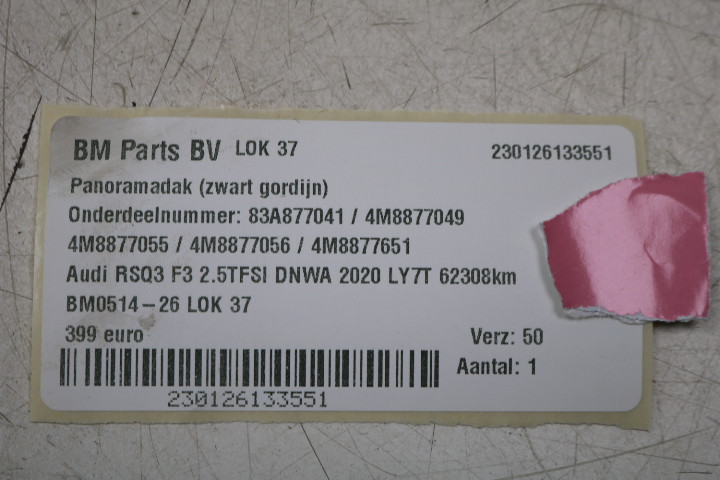 Panoramadak (zwart gordijn) Audi RSQ3 F3