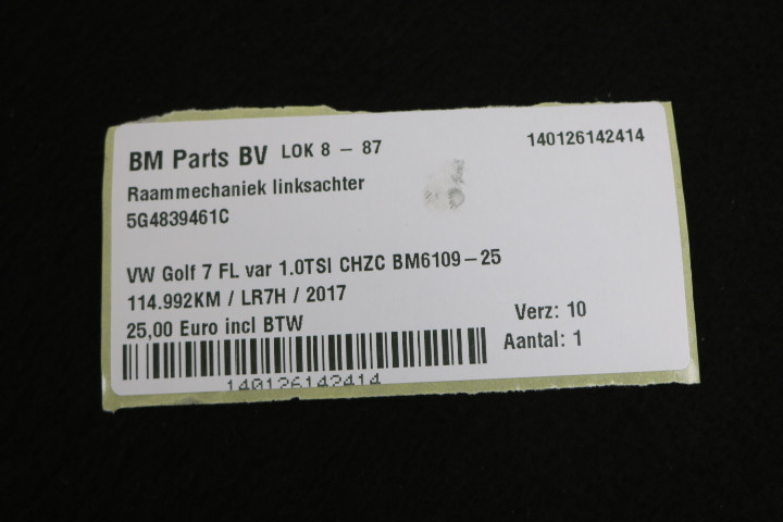 Raammechaniek linksachter VW Golf 7 FL