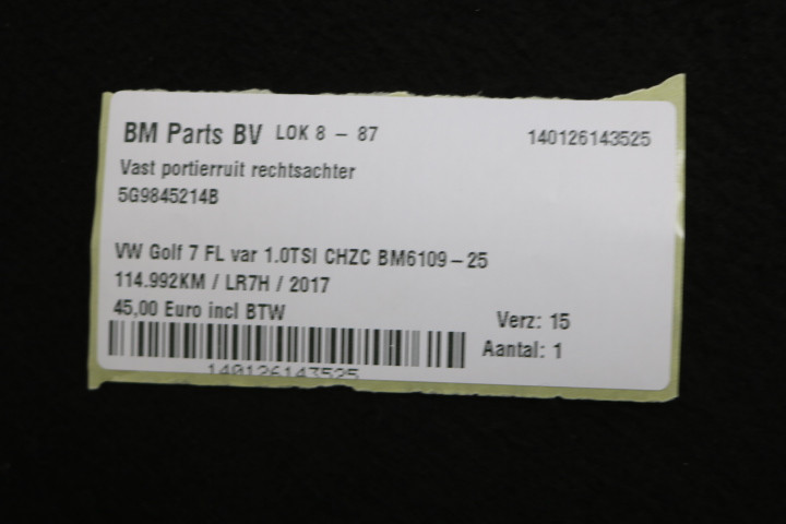 Vast portierruit rechtsachter VW Golf 7 FL