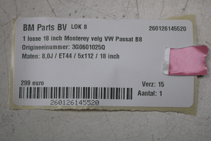 • Origineel hoort deze velg onder een VW Passat B8.