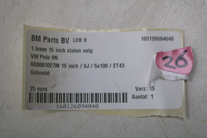Velg maten: 15 inch / 6J / 5x100 / ET43