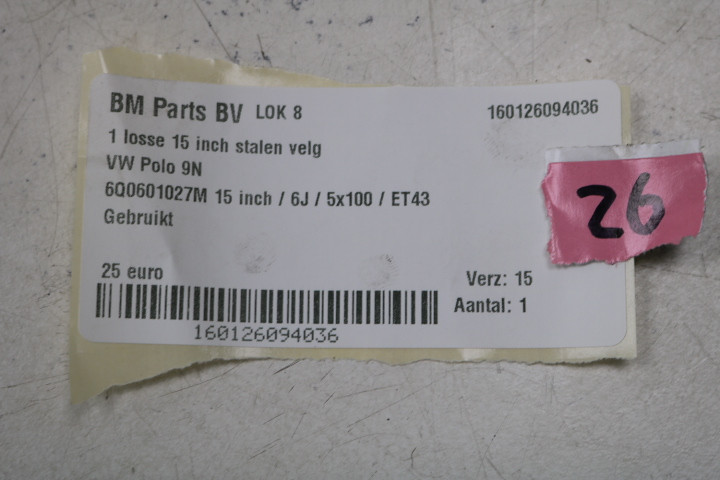 Velg maten: 15 inch / 6J / 5x100 / ET43