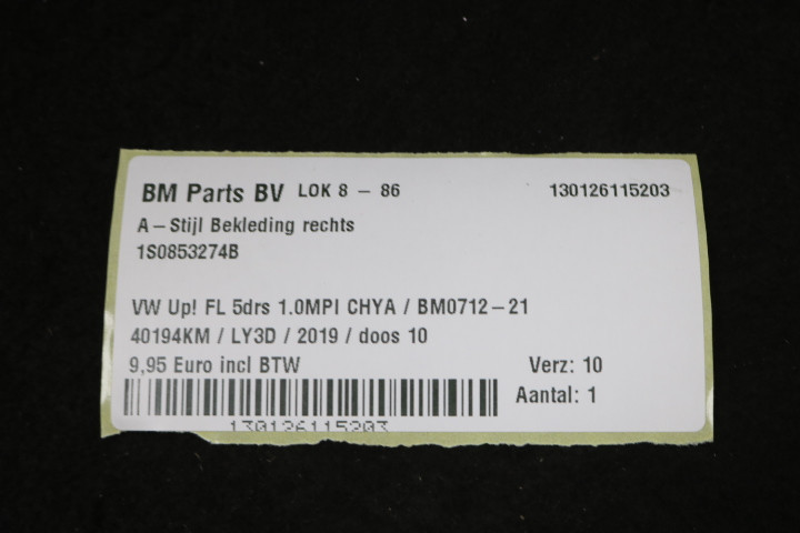 back / interieur / Hemeldelen / A Stijlen / A-stijl bekleding rechts VW UP! FL