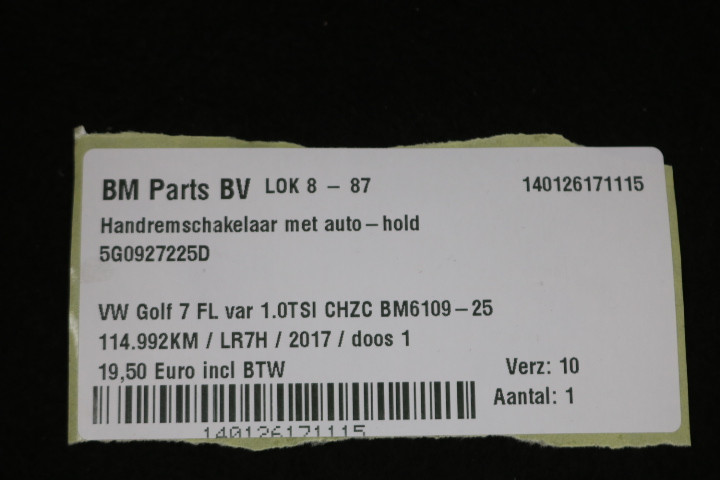Handremschakelaar met auto - hold VW Golf 7 FL