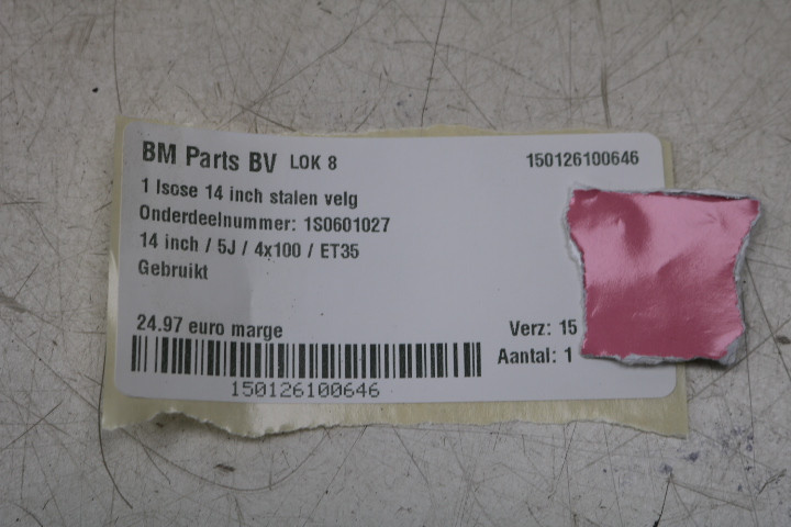 1 losse 14 inch stalen velg VW Up / Mii / Citigo