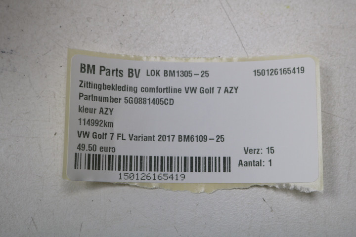 Zittingbekleding comfortline VW Golf 7 AZY