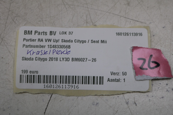 Portier rechtsachter LY3D VW Up / Citigo /Seat Mii