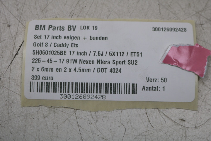 • Maten: 7,5J / ET51 / 5x112 / 17 inch