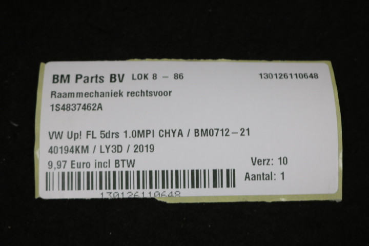 Raammechaniek rechtsvoor VW Up! FL