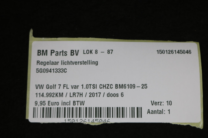 Regelaar lichtverstelling VW Golf 7 FL