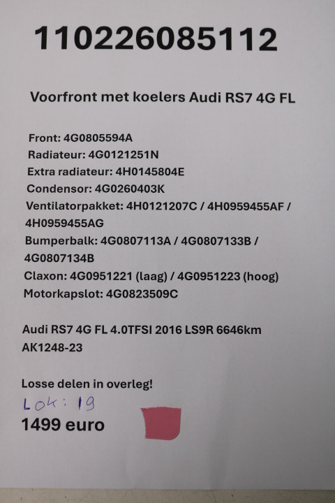 Voorfront met koelers Audi RS7 4G FL 6646km oud