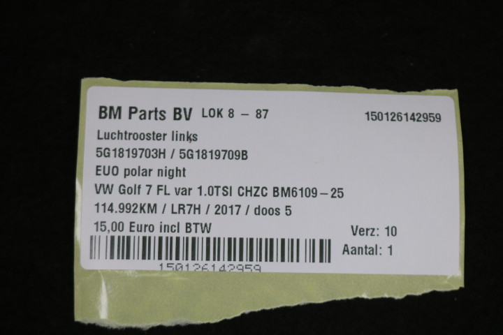 Luchtrooster links VW Golf 7 FL var.