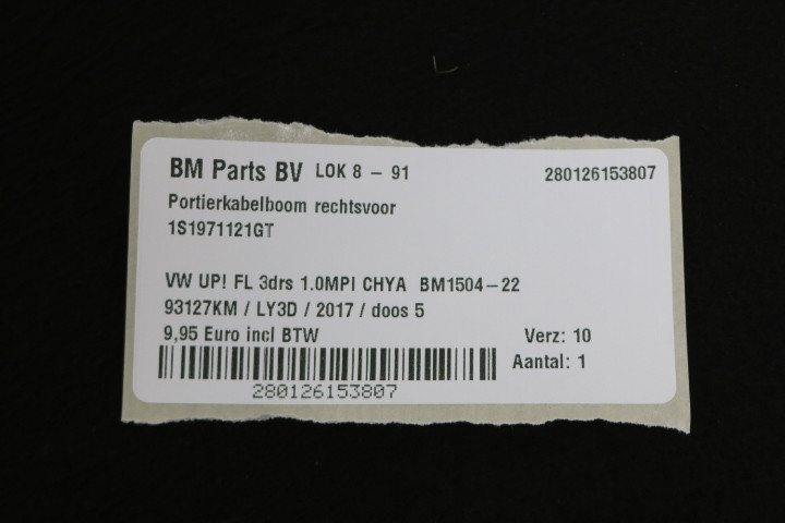 Portierkabelboom rechtsvoor VW UP! FL