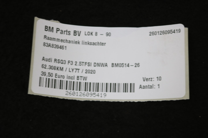 Raammechaniek linksachter Audi RSQ3 F3