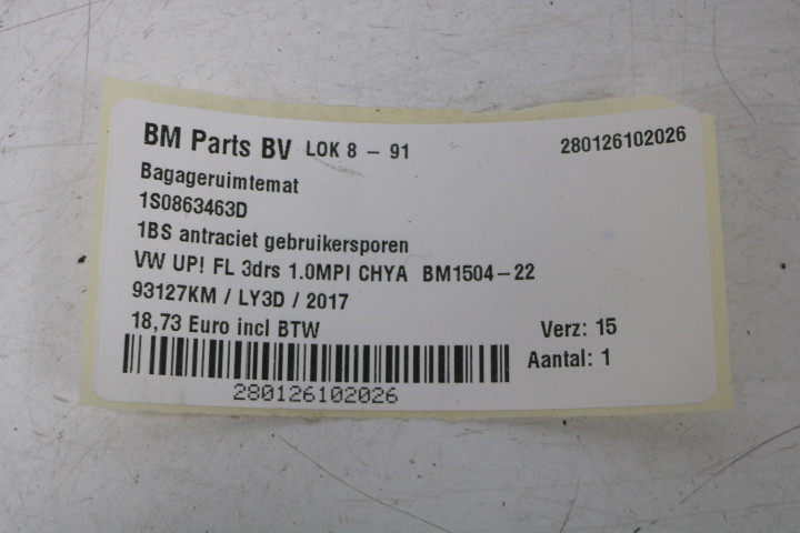 Bagageruimtemat VW UP! FL
