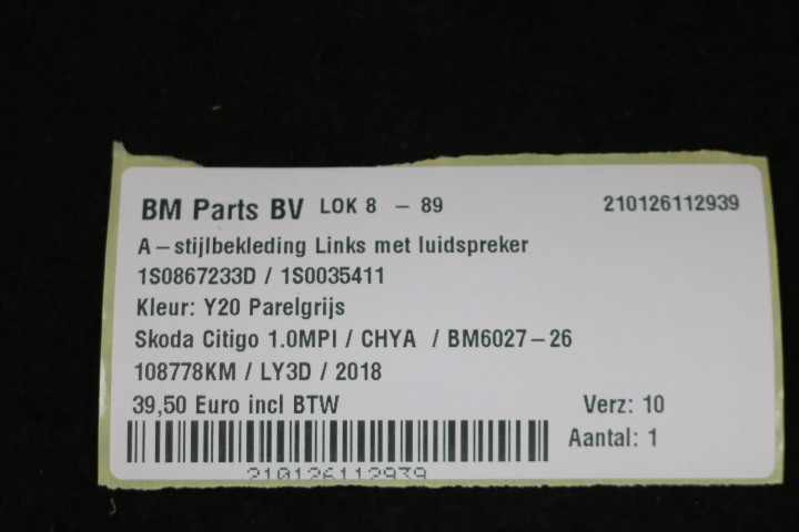 A-stijl bekleding links met luidspreker Skoda Citigo