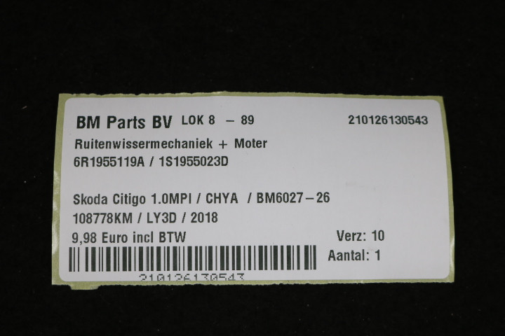 Ruitenwissermechaniek + motor Skoda Citigo