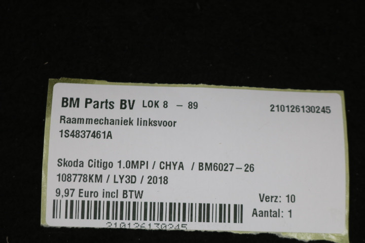 Raammechaniek linksvoor Skoda Citigo