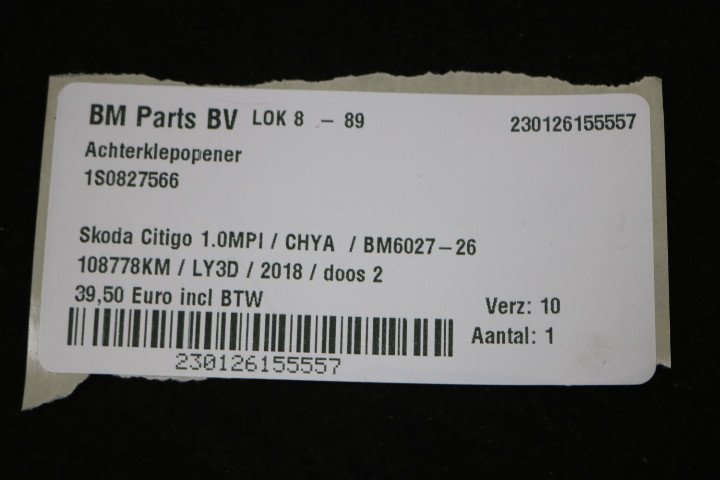 Achterklepopener Skoda Citigo