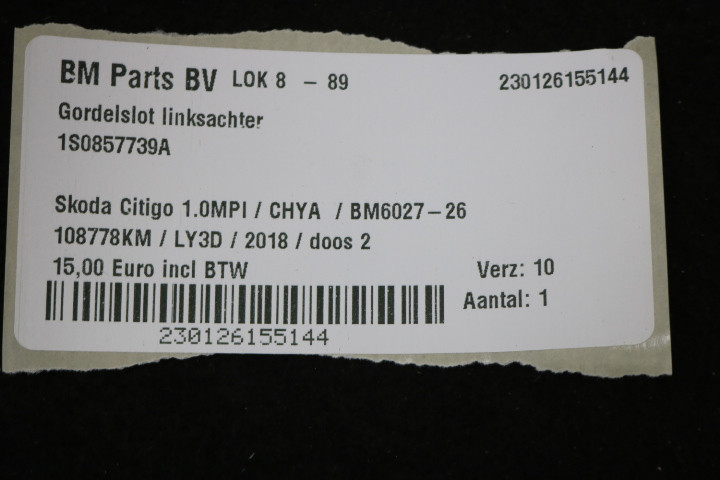 Terug / interieur / Airbags & Gordels / Gordel Sloten / Gordelslot linksachter Skoda Citigo
