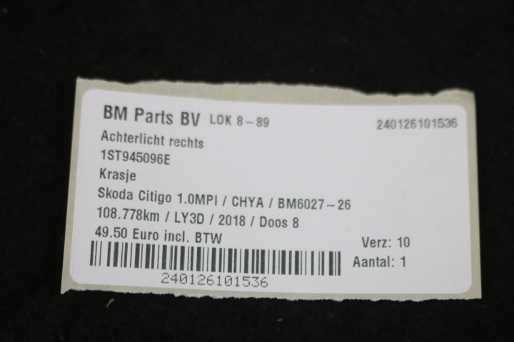 Achterlicht rechts Skoda Citigo