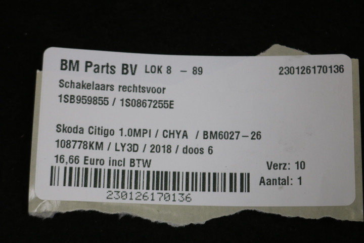 Schakelaar rechtsvoor Skoda Citigo