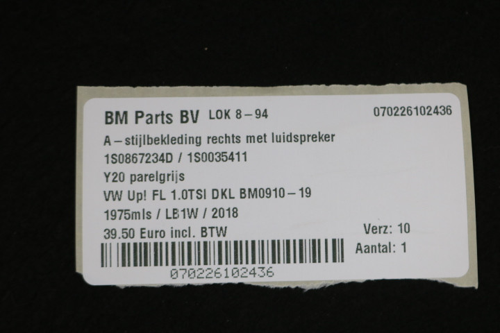 A-stijlbekleding rechts met luidspreker VW UP! FL