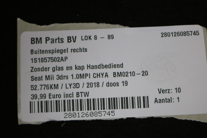 Buitenspiegel rechts Seat Mii 3drs