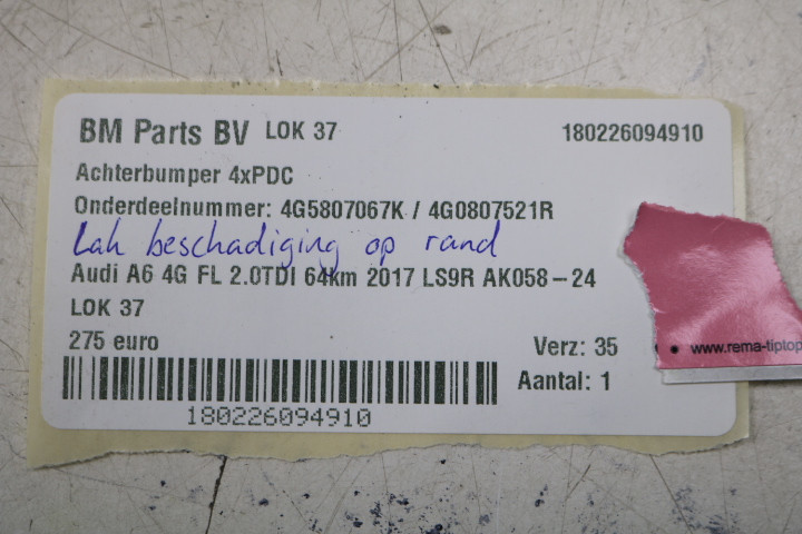 Achterbumper 4X PDC Audi A6 4G FL LS9R 64m oud