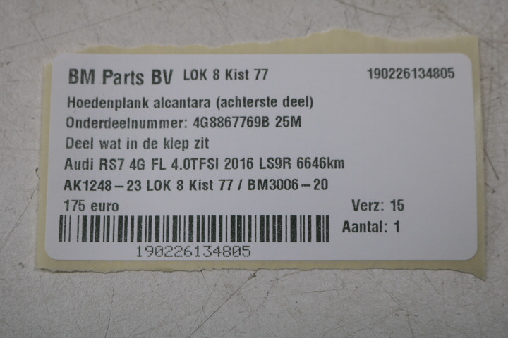 Hoedenplank Alcantara (achterste deel) Audi RS7 4G FL 25M