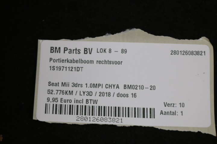 Portierkabelboom rechtsvoor Seat Mii 3drs