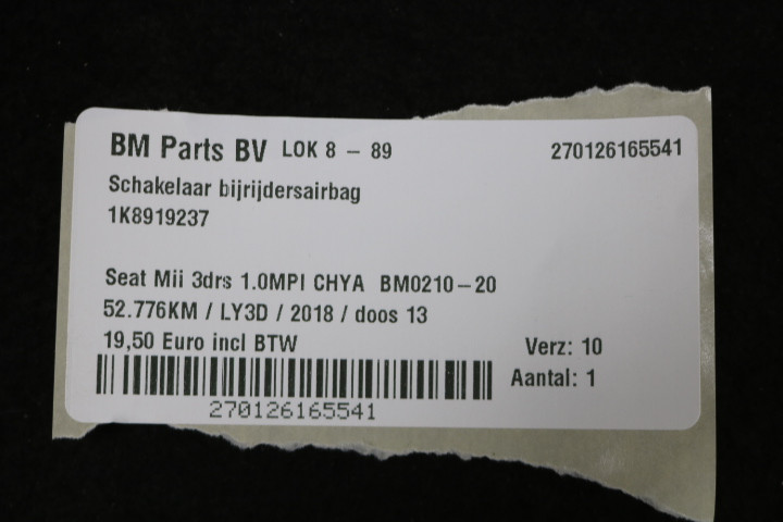 Schakelaar bijrijdersairbag Seat Mii
