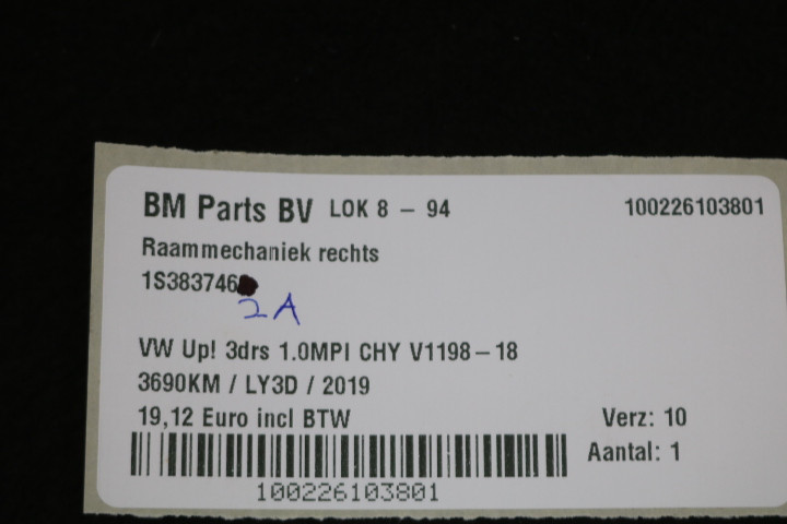 Raammechaniek rechts VW UP! FL