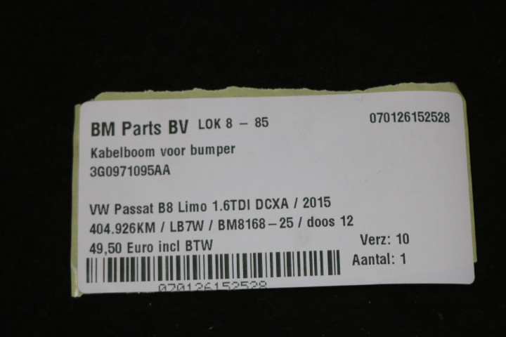 Kabelboom voorbumper VW Passat B8 Limo
