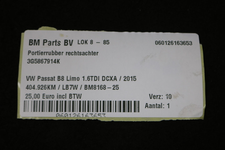 Portierrubber rechtsachter VW Passat B8 Limo