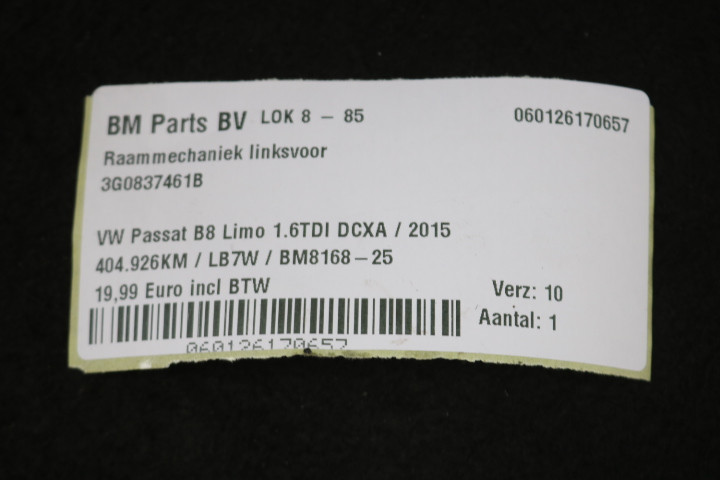 Raammechaniek linksvoor VW Passat B8 Limo