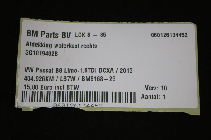 Afdekking waterkast rechts VW Passat B8 Limo