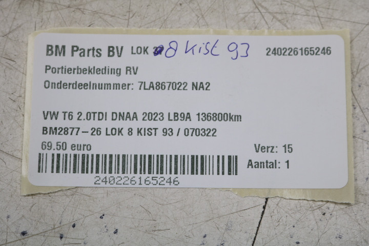 Portierbekleding RV VW Transporter T6 NA2