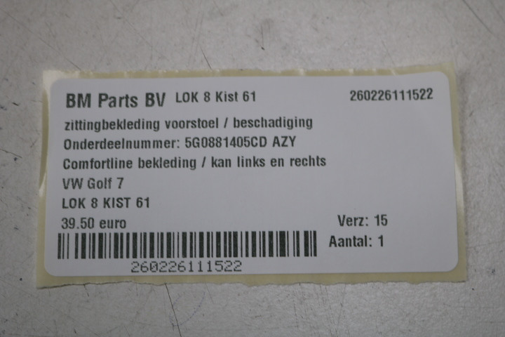 Zittingbekleding voorstoel VW Golf 7 AZY