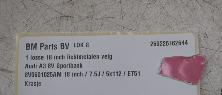 • Origineel hoort deze velg onder een Audi A3 8V Sportback.