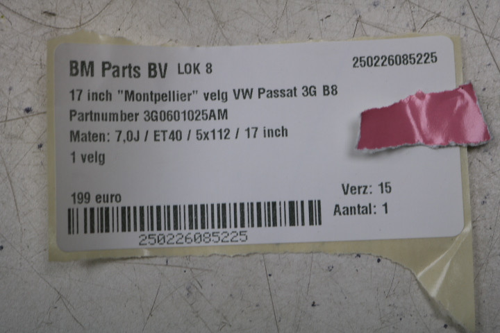 • Origineel hoort deze velg onder een Volkswagen Passat 3G B8.