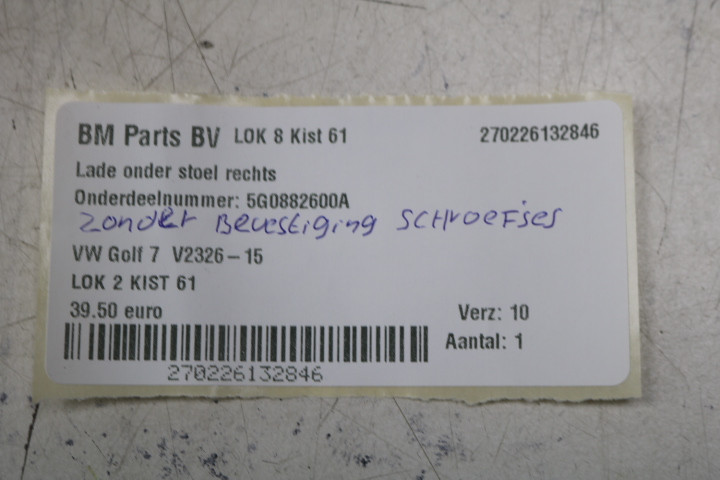 Lade onder stoel rechts VW Golf 7