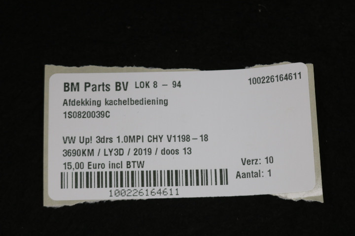 Afdekking kachelbediening VW Up!