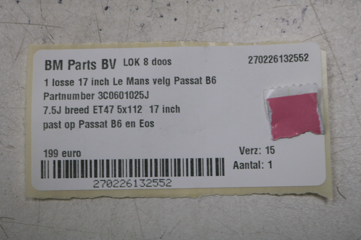 • Origineel hoort deze velg onder een Volkswagen Passat B6.