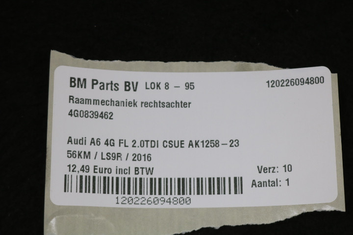 Terug / Exterieur / Wissers & Ruiten / Mechaniek Achterdeur / Raammechaniek RA Audi A6 4G FL
