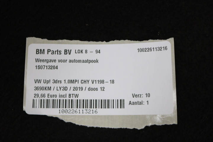 Weergave voor automaatpook VW Up!
