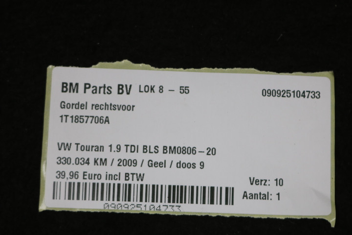 Gordel rechtsvoor VW Touran 1T