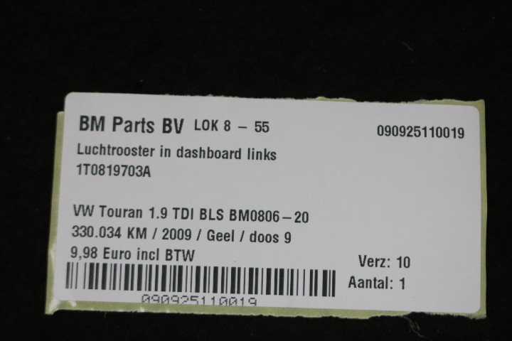 Luchtrooster in dashboard links VW Touran 1T